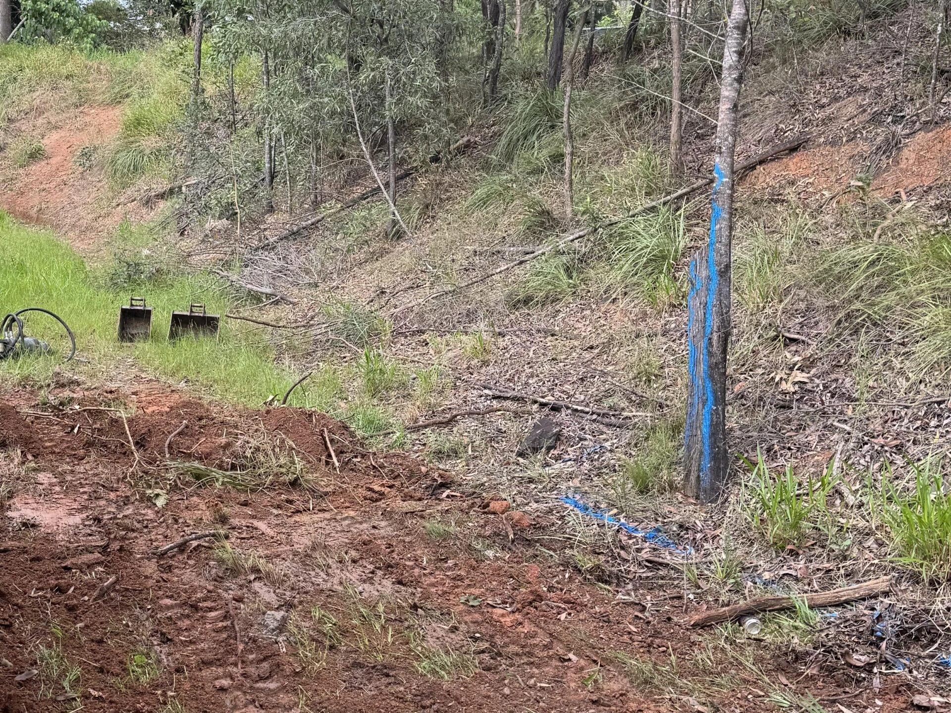 If the space around your retaining wall has trees or large vegetation, we recommend marking these with some brightly coloured spray paint for visibility when building.