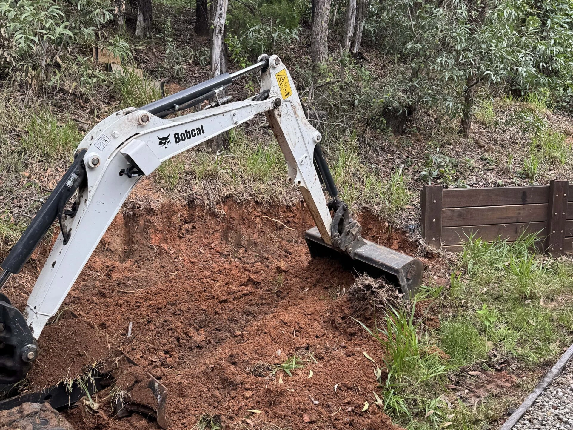 When excavating for a retaining wall, you should leave enough room behind where the wall will be to add drainage systems (50-100mm for SuperSleeper drainage mat and 30mm for geofabric drainage blanket) – and allow enough space for you to work easily.