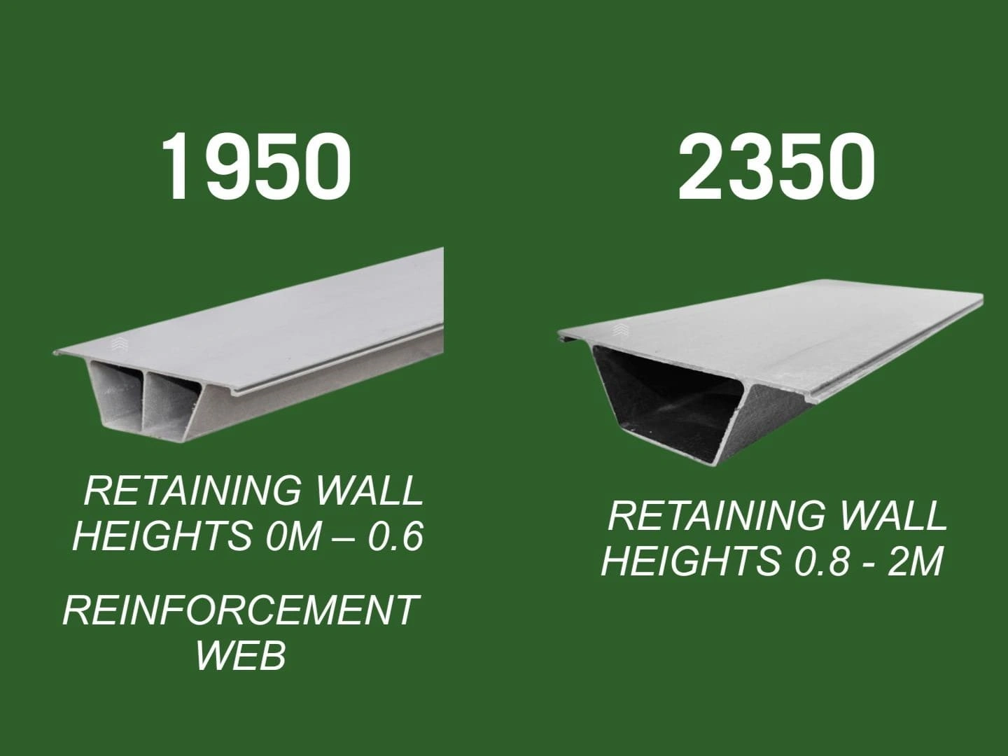 If your retaining wall is between 0.8m and 2m we recommend the smaller 1950mm size. This is because with shorter sleeper bays there’s more posts along the run to act as structural supports. The 1950mm sleeper has a built-in web support through the middle for extra strength.