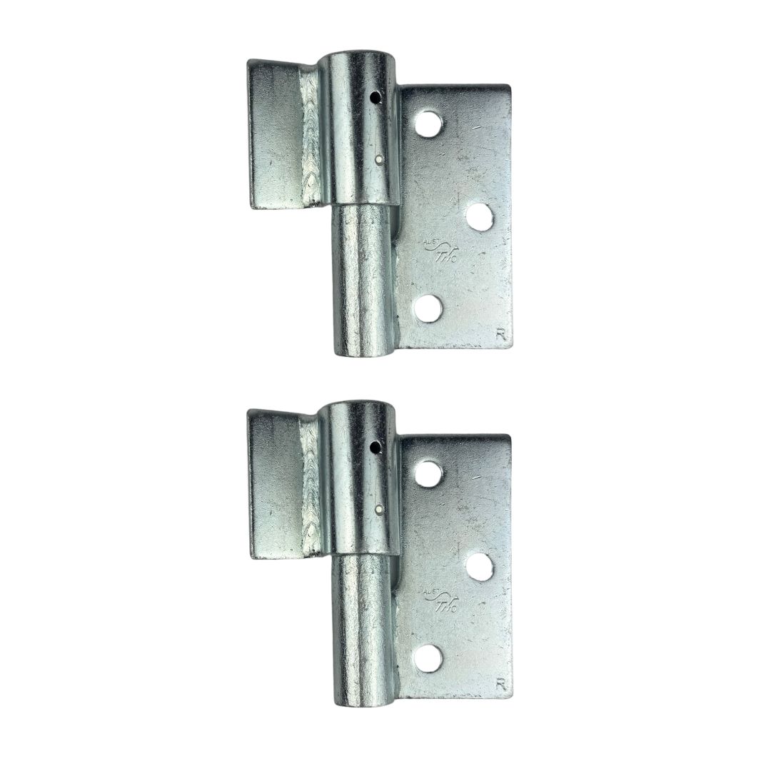 These gate hinges require one side to be welded to the gate frame and the other side to be screwed onto a fence post. They are designed to provide smooth, quiet movement, making them ideal for gates that see regular use like pedestrian gates.